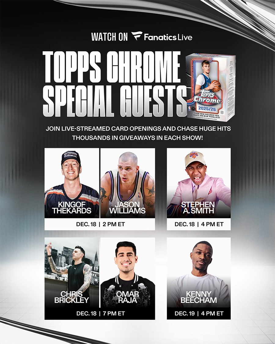 Fan-favorite creators and some of the most recognizable names in basketball are joining the action, hosting exclusive breaks, offering live reactions, and giving away hits from the brand-new Chrome checklist. Whether you’re hunting short prints or tuning in for the star power, this is the drop the hobby has been waiting for.